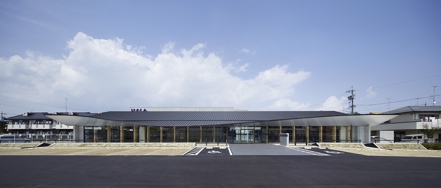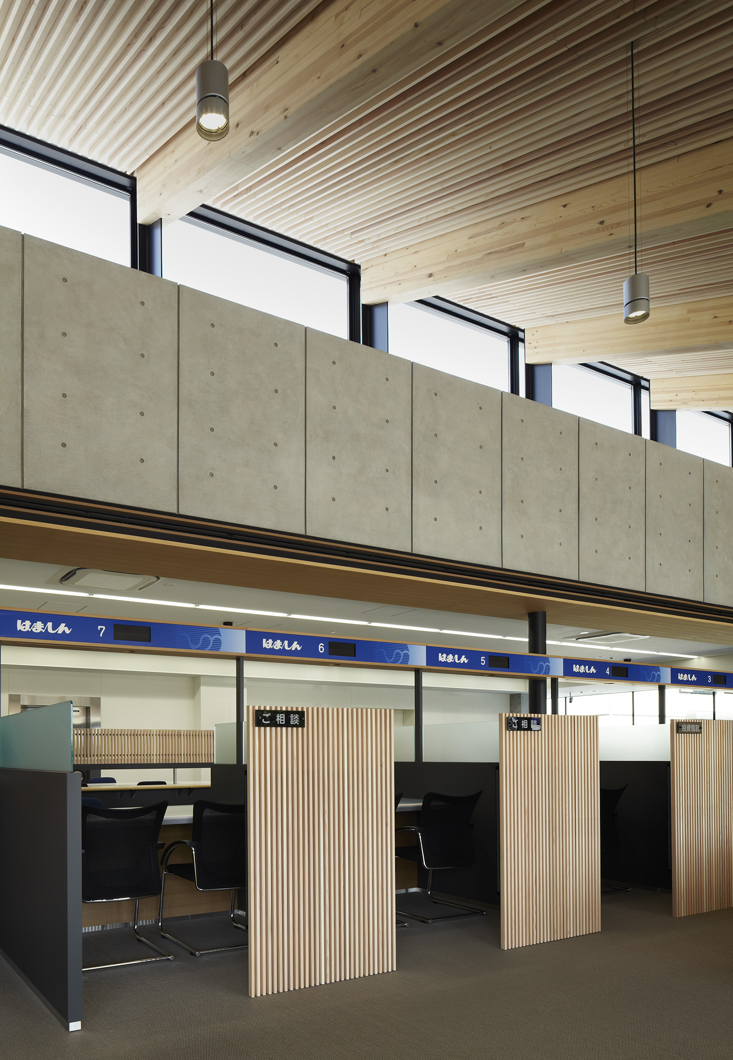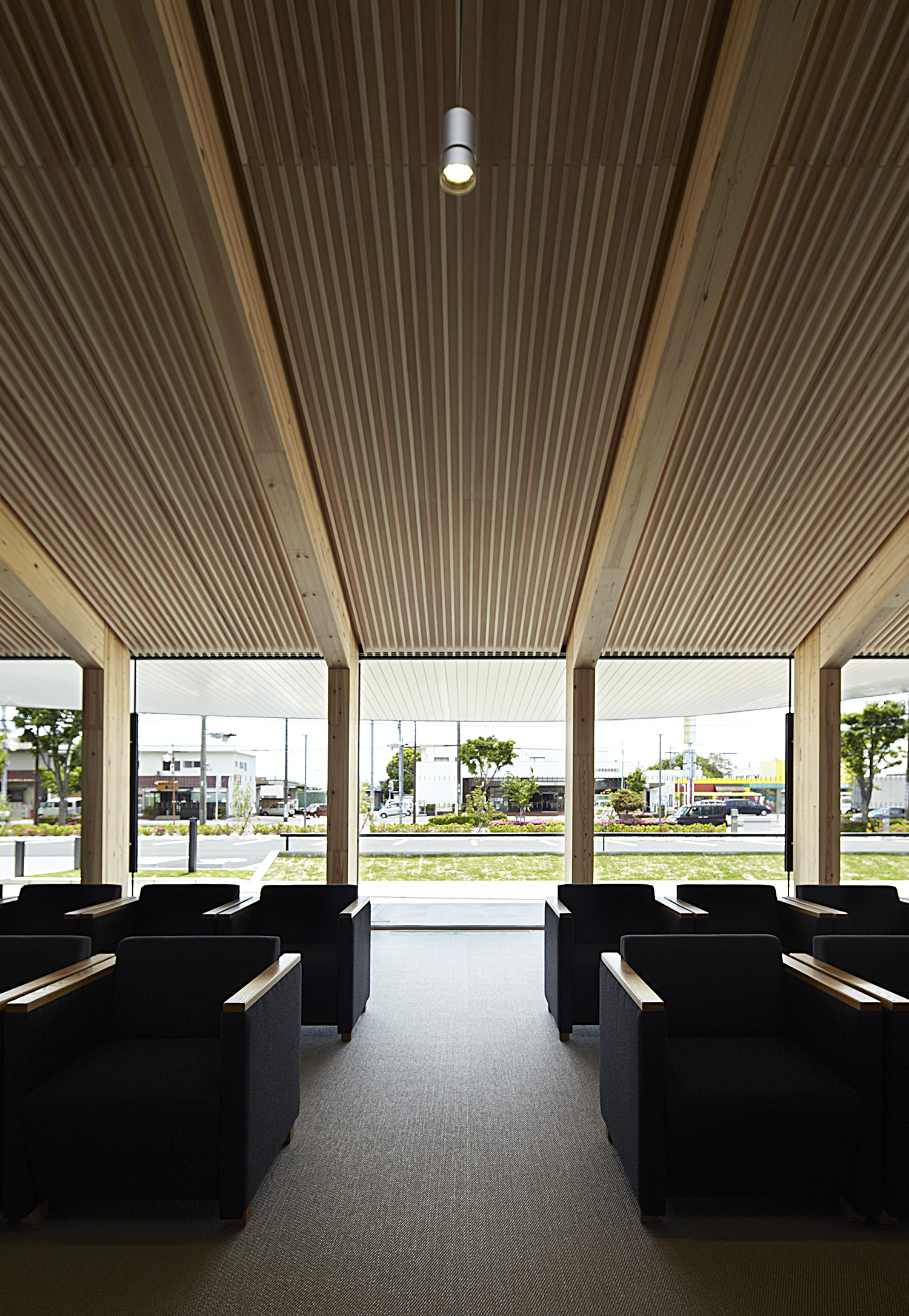 上記店舗の二店舗目の計画。上記店舗同様に建物で地域にアピールするため、地域性を大事に設計した店舗。製造業の文化残るまち浜松にて、自動車産業や音楽機器等独特の曲線ラインを強調したデザインの地域性を表現した外観とした。内装は地場産材である天竜木を用い、訪れた方が地元の木のぬくもり、においを体感できることを強く意識し、全面的に木質空間とした。