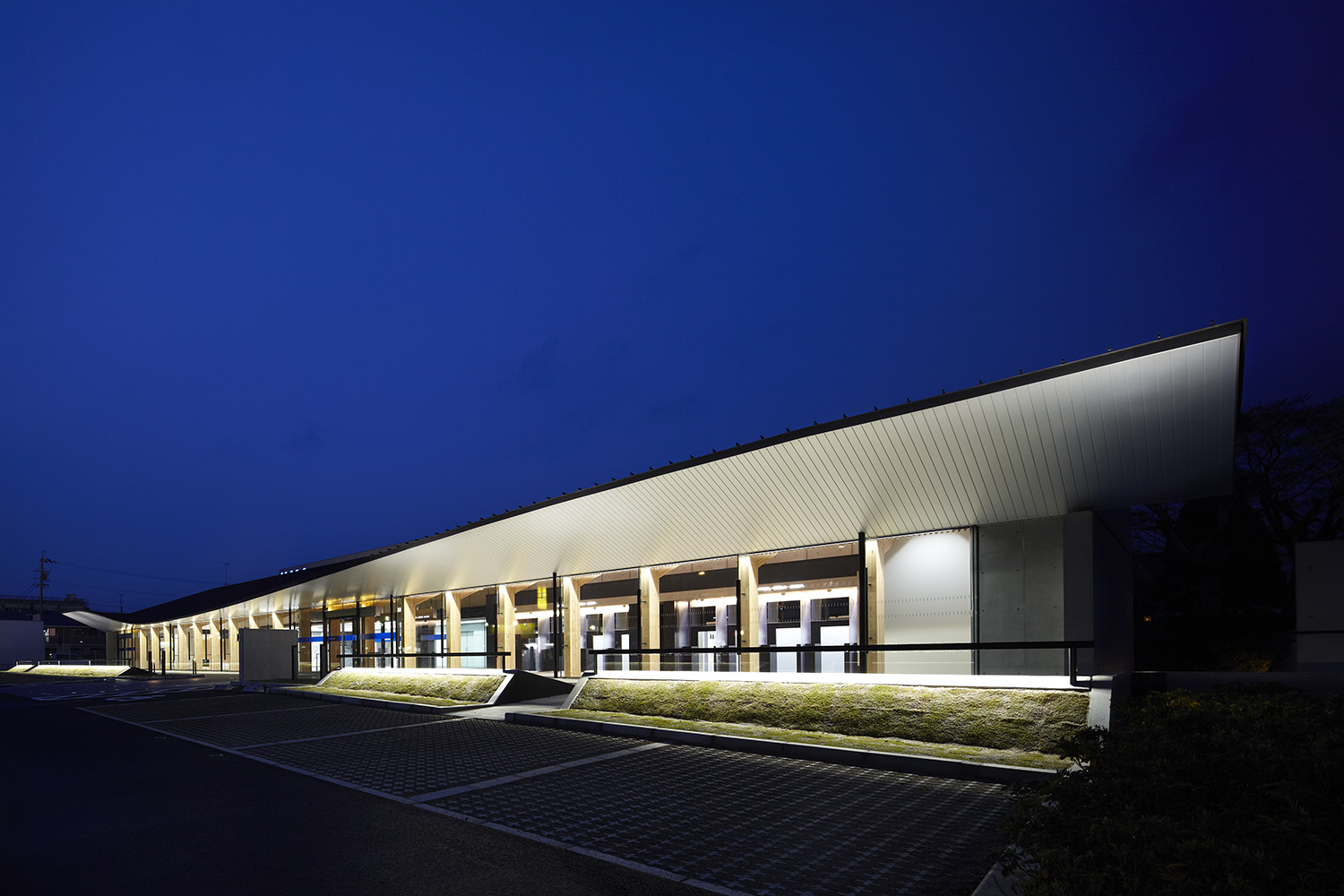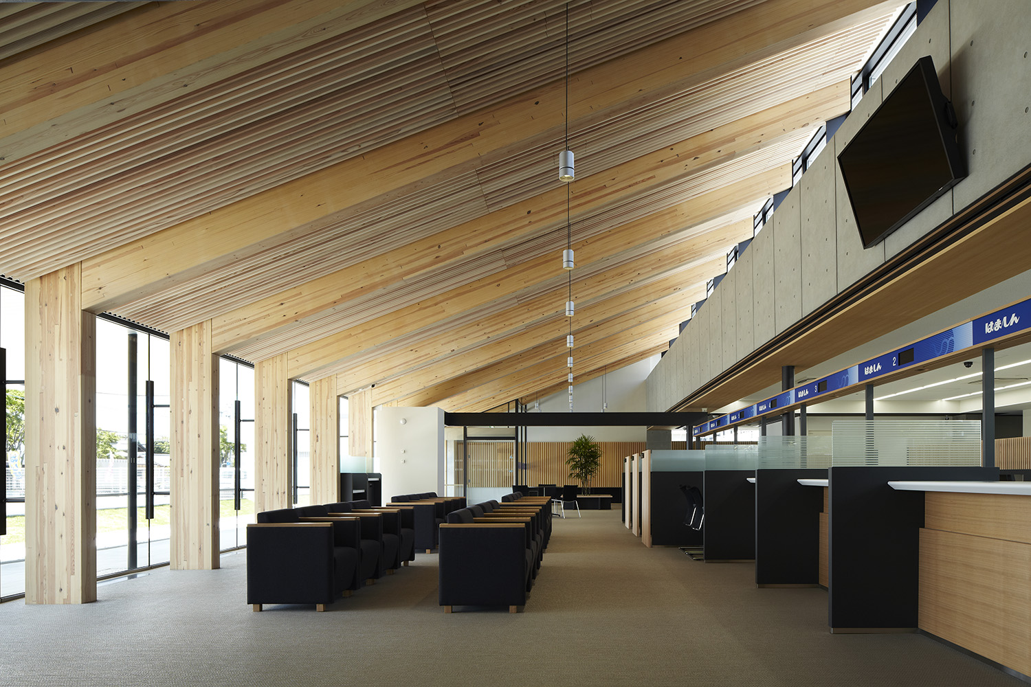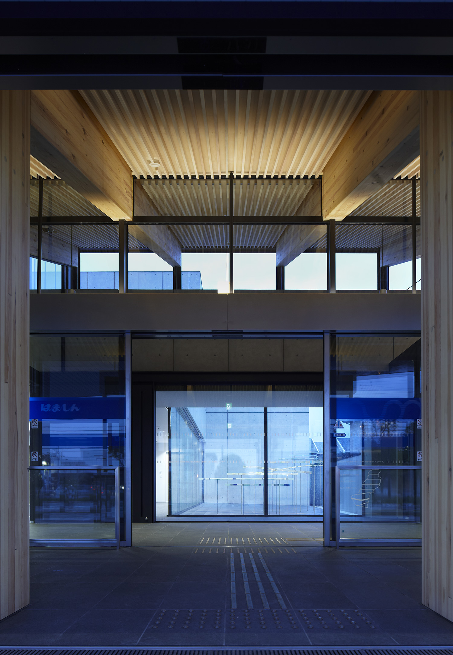 上記店舗の二店舗目の計画。上記店舗同様に建物で地域にアピールするため、地域性を大事に設計した店舗。製造業の文化残るまち浜松にて、自動車産業や音楽機器等独特の曲線ラインを強調したデザインの地域性を表現した外観とした。内装は地場産材である天竜木を用い、訪れた方が地元の木のぬくもり、においを体感できることを強く意識し、全面的に木質空間とした。