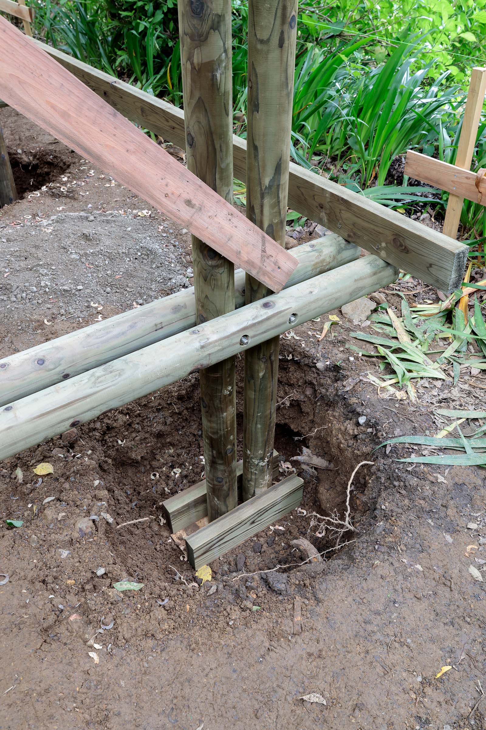 コンクリートを一切使わずに、木材とボルトのみで構築物を計画している。材料は2tトラックで運搬可能。工事環境が整っていない場所でも、身軽に構築物を作ることを強く意識した
