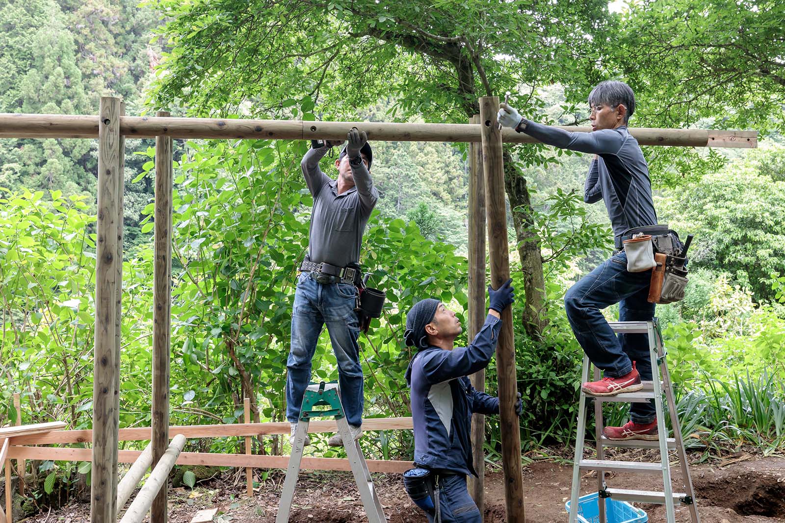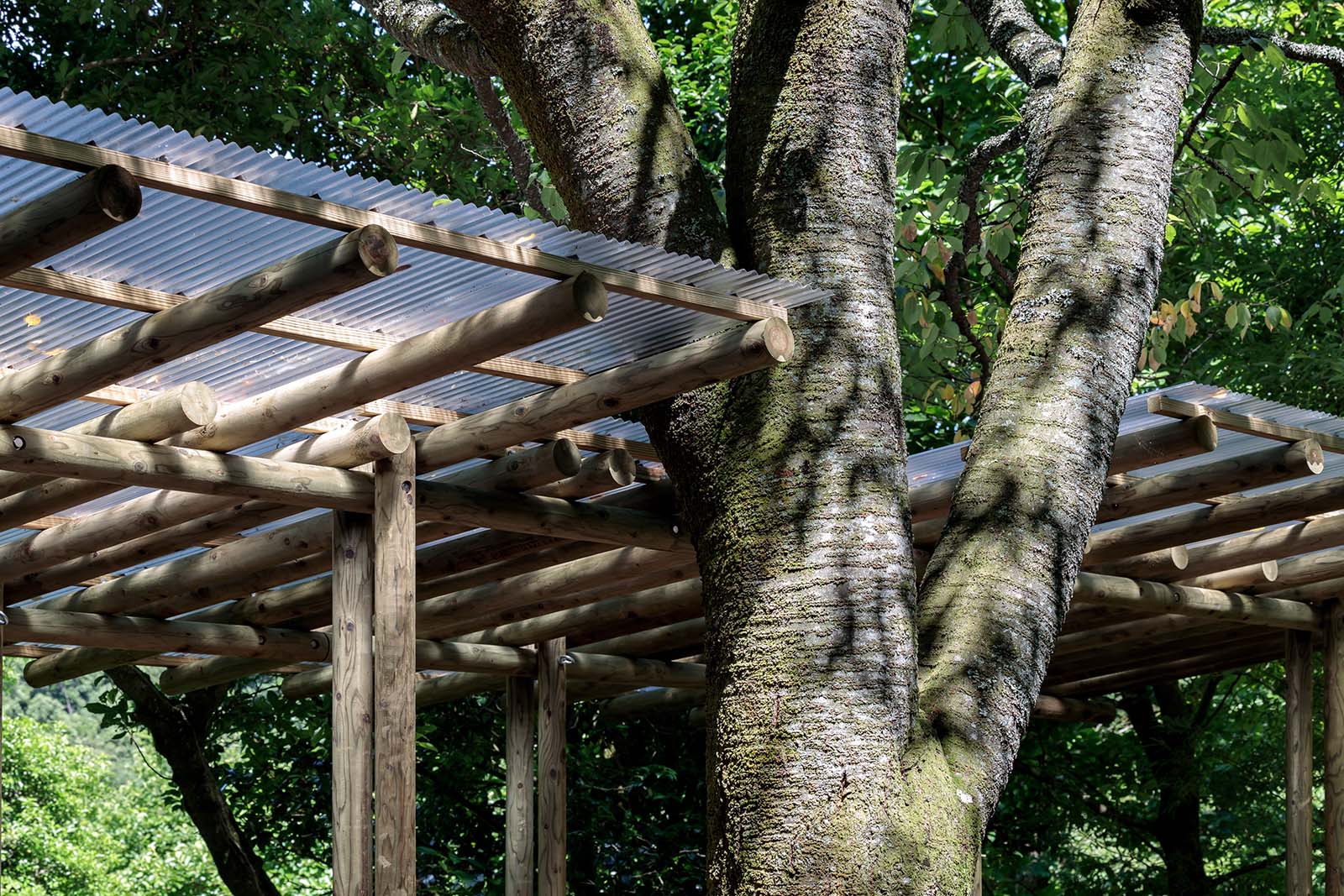 移築、また木材のみのため土に戻すことも可能。材料を限定することによる構築物のサーキュレーションを腐らない木材で実現した