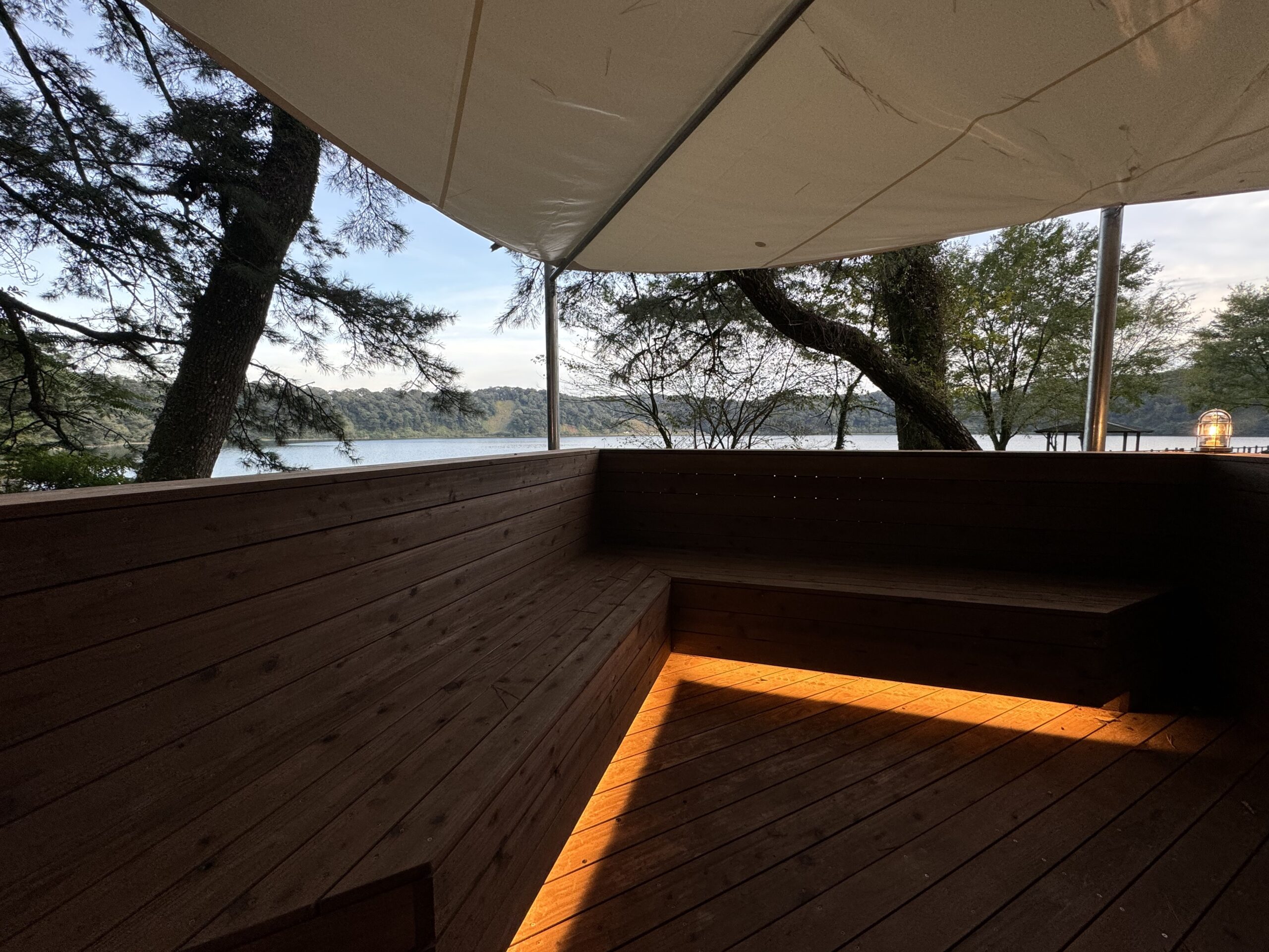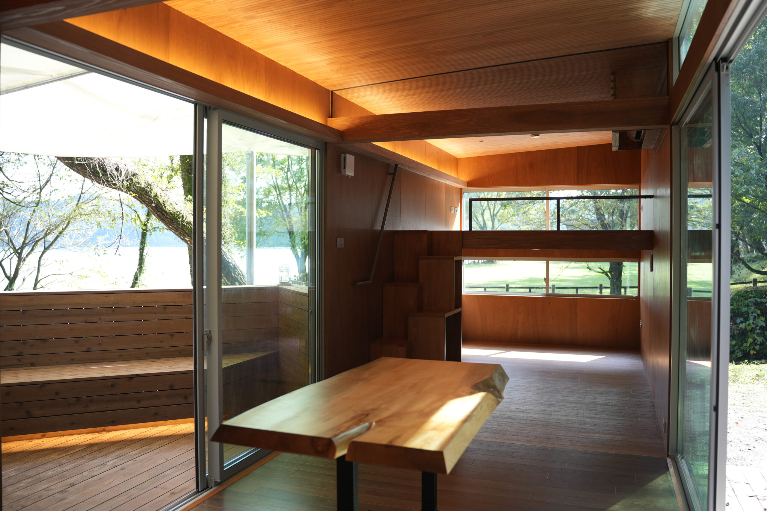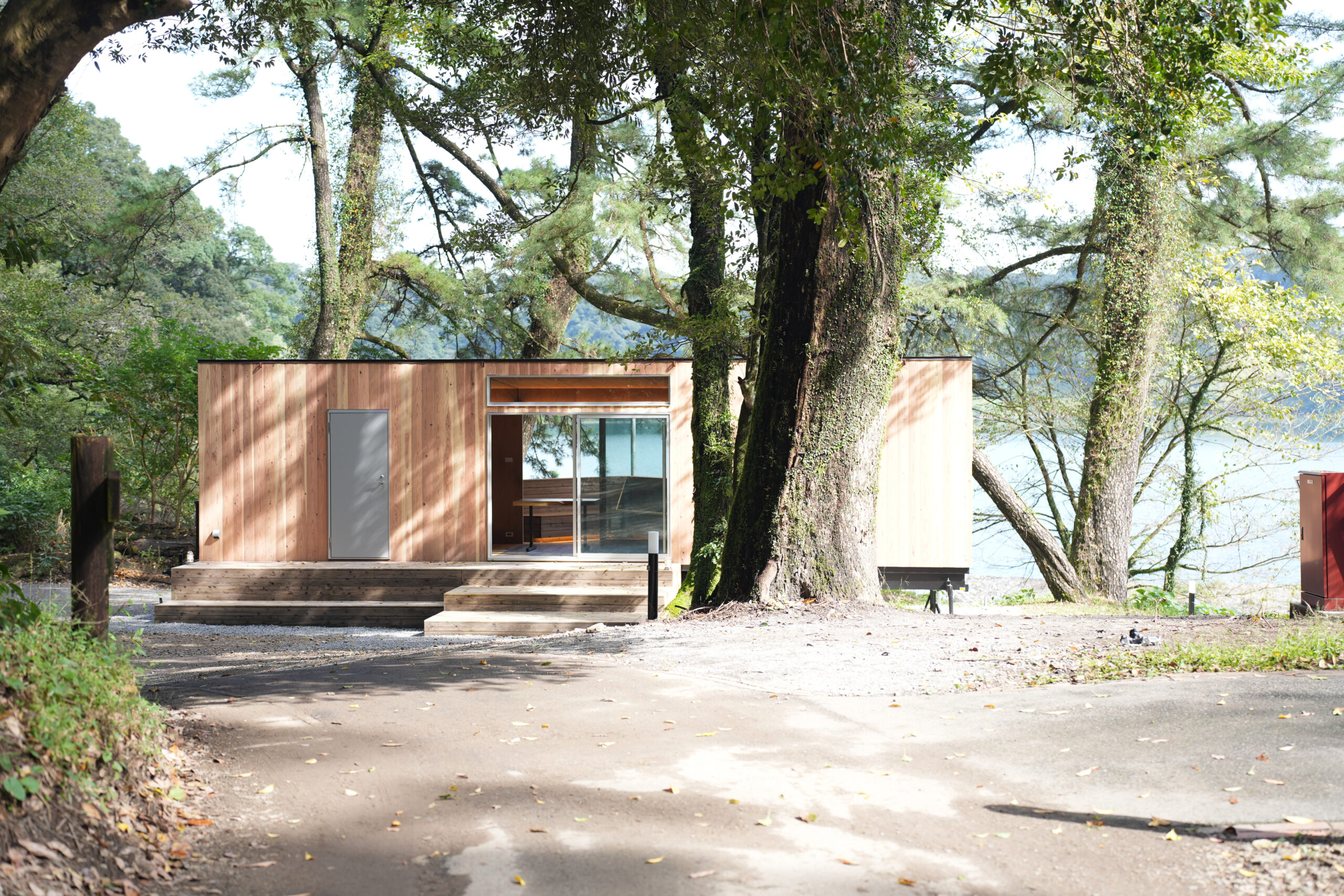 御池キャンプ村は日本最初の国立公園内にあり、水深100mの火山湖、巨大な水盤となる御池と、原生林、そこにたくさんの貴重な野鳥がやってくる環境がある。ここにしかない原風景をできる限り変えることなく、そして豊かな自然環境を保護するために、自然の縁を楽しむ空間をコンセプトにした空間を実現した