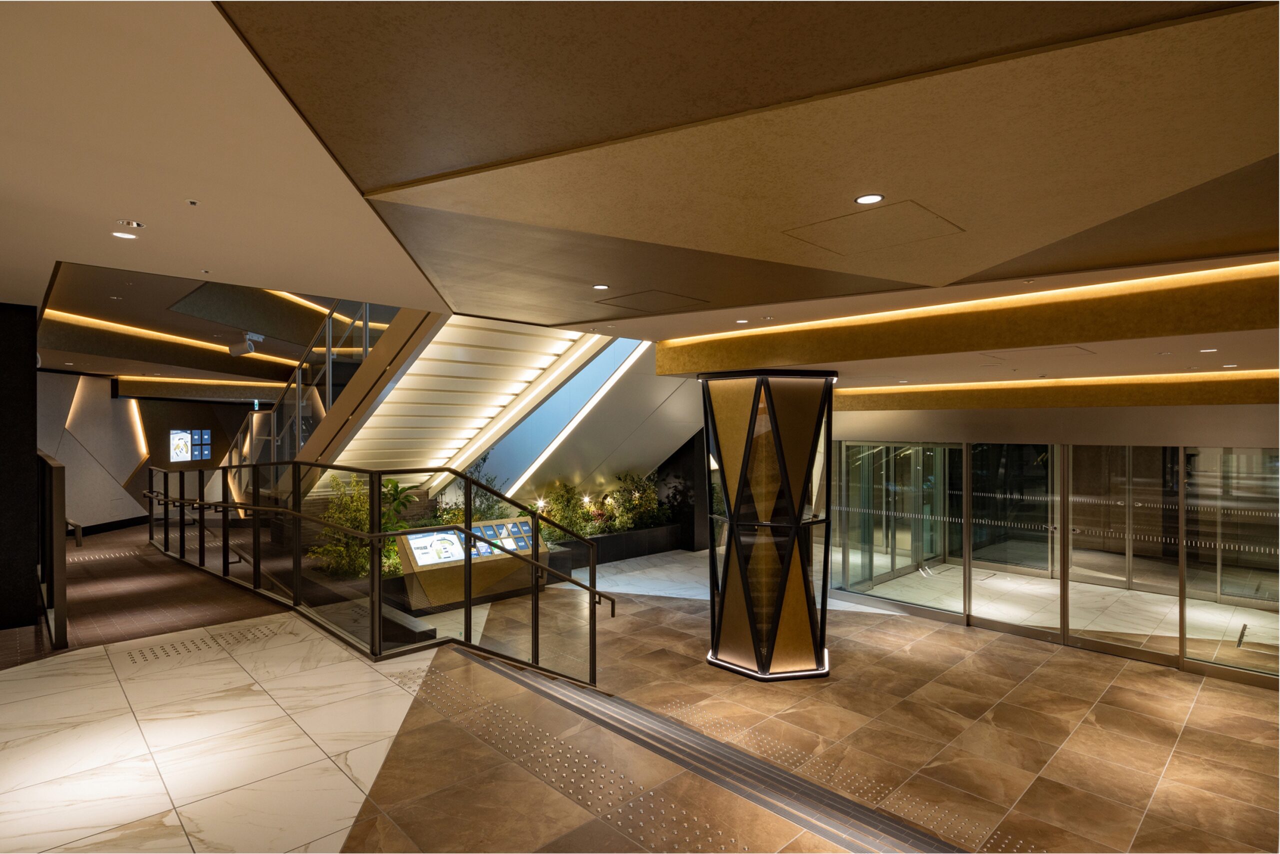伝統ある地下街に接続するほか、グラウンドフロアにおいては、愛知県の地場散財である檜を活用したエントランスホール、名古屋駅付近にはすくない砂岩系の暖色石を利用し、街並みをつくることを意識している