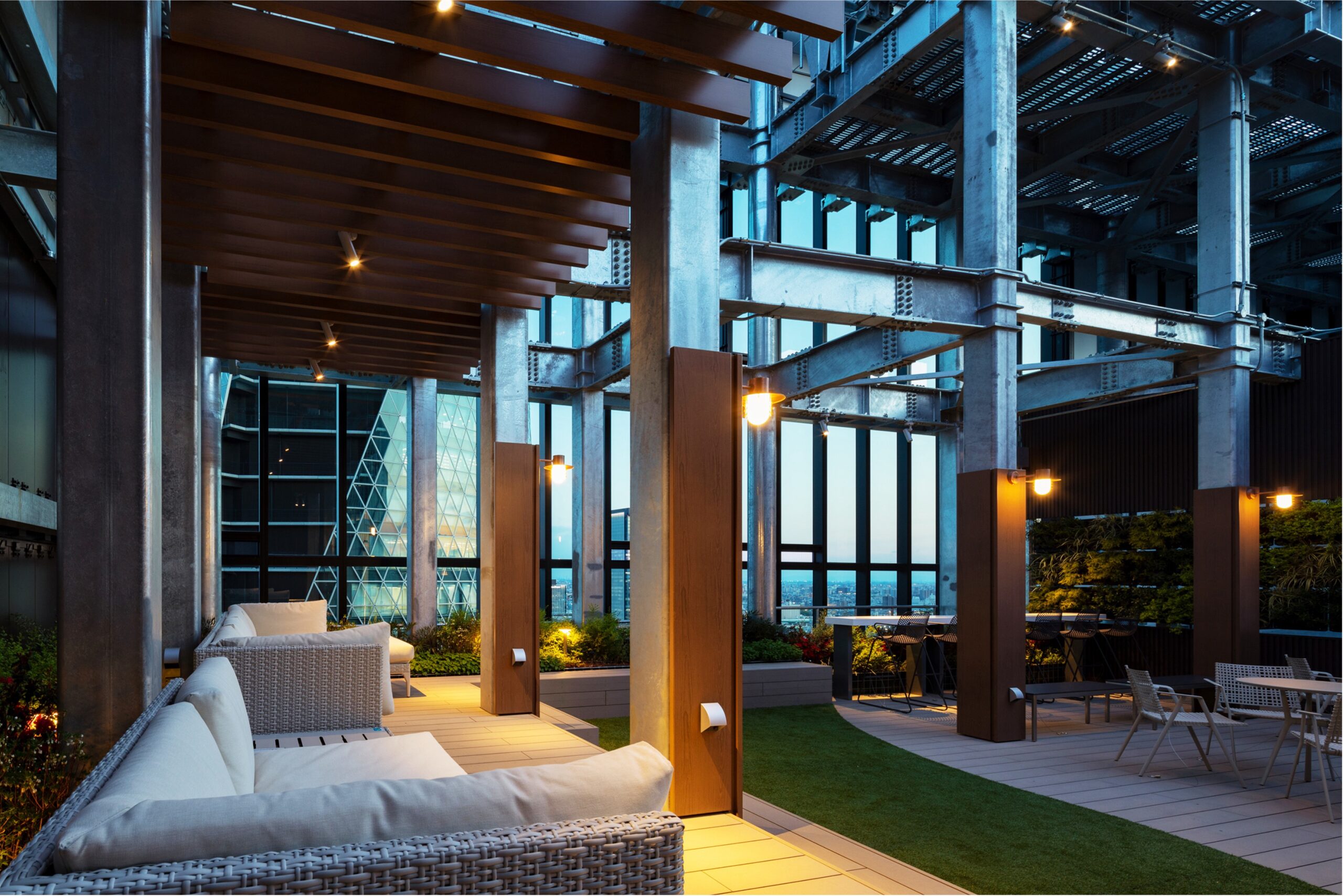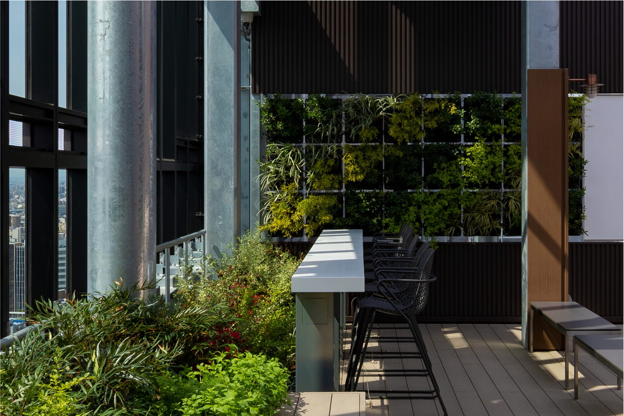 オフィス基準階にはリフレッシュできるバルコニーを設置したほか、最上階にはハーブテラスを設け、高層ビルにおいて働く際の選択肢を設計している