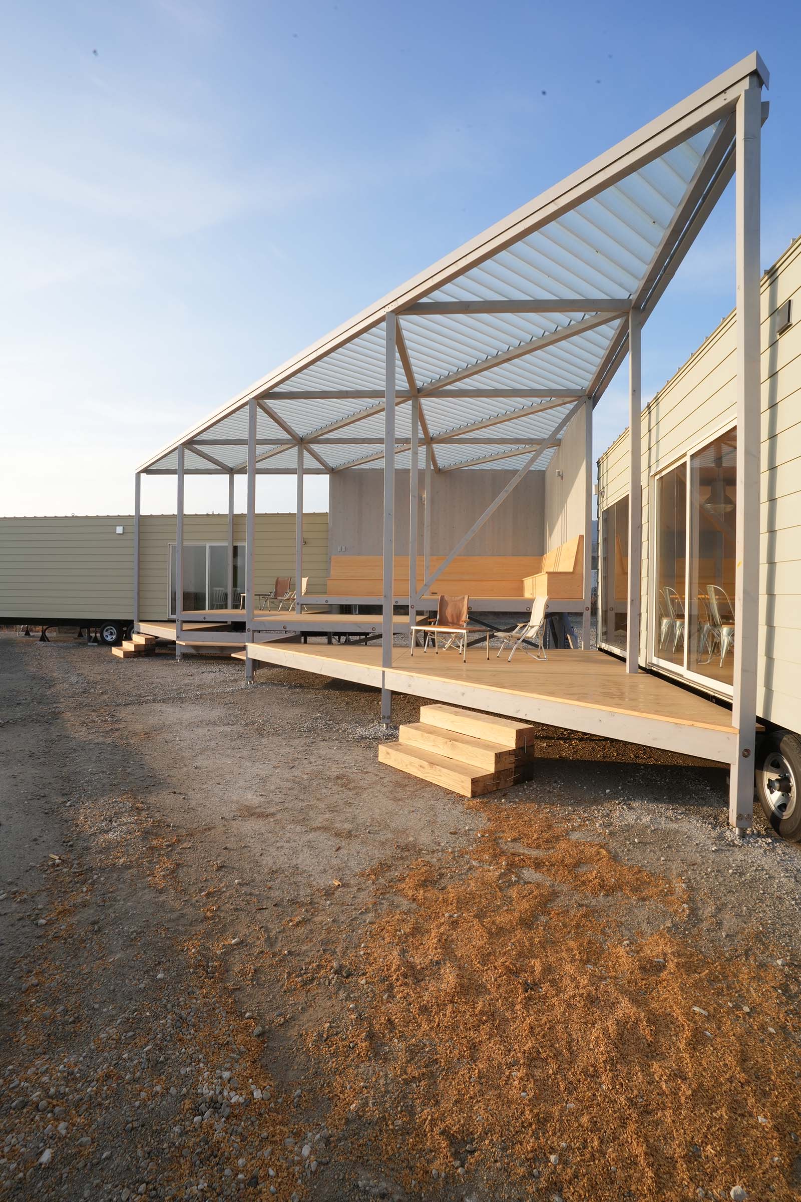 設計:AREANO 鳥海宏太(トレーラー設計及びプロジェクトコーディネート)/ 倉林貴彦建築設計事務所(テラス及び外構設計)/ LAND(トレーラー内装及び家具選定)